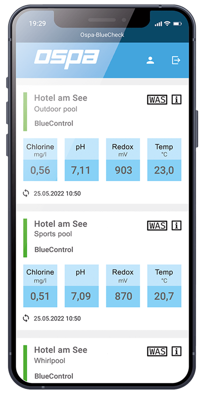 tek bir parmak dokunuşuyla. Birden fazla yüzme havuzu tesisi için çözüm Birkaç sistemin yönetilmesi gerektiğinde! Ospa BlueCheck web